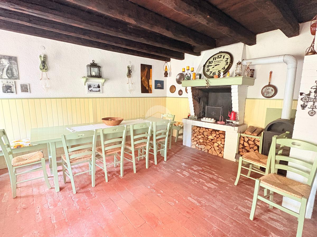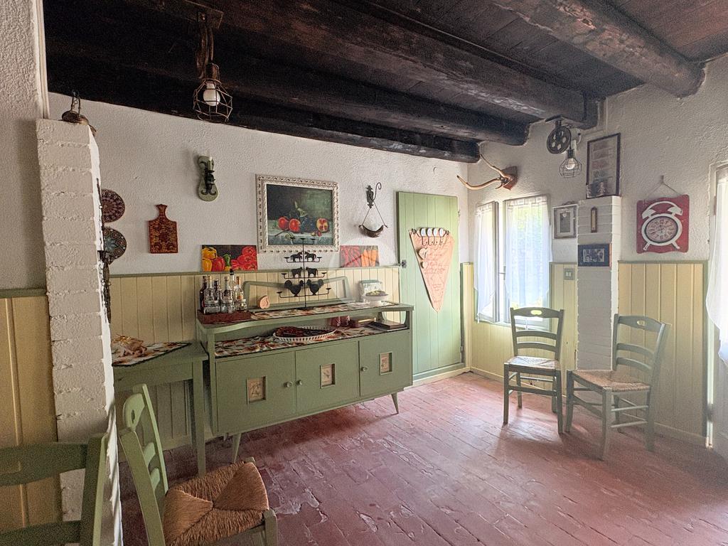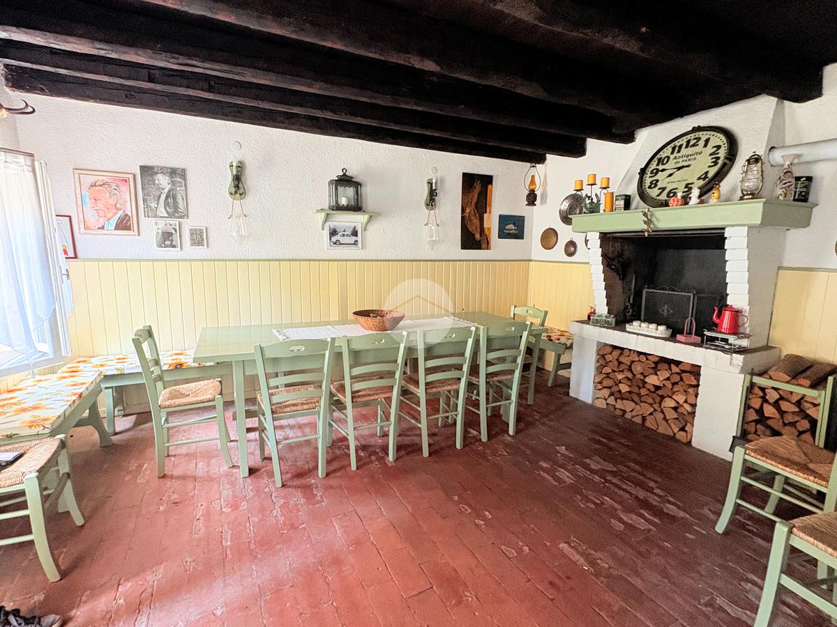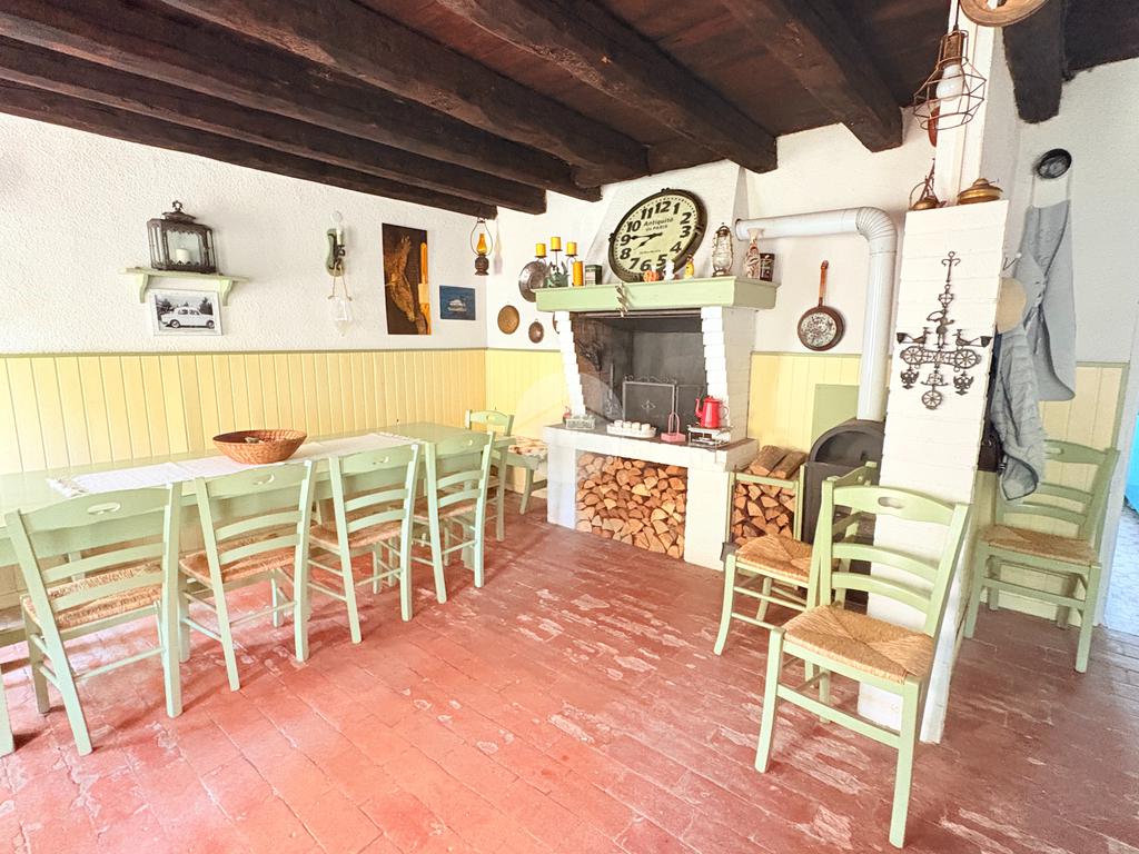 Ampia sala da pranzo con camino, ideale per cene conviviali in un’atmosfera accogliente;