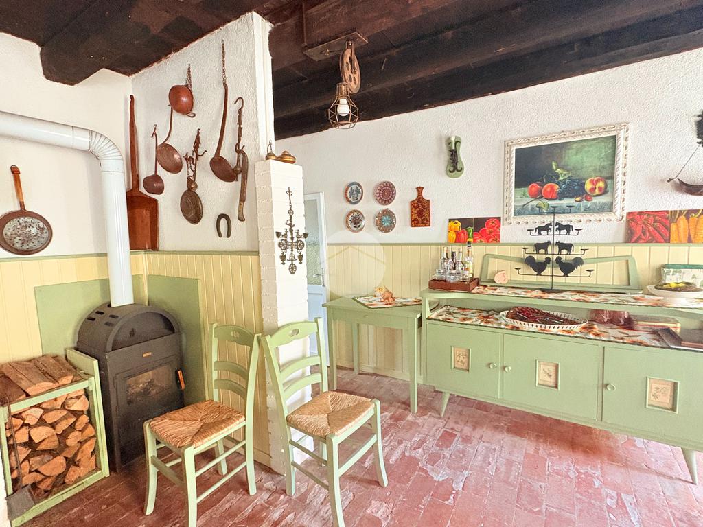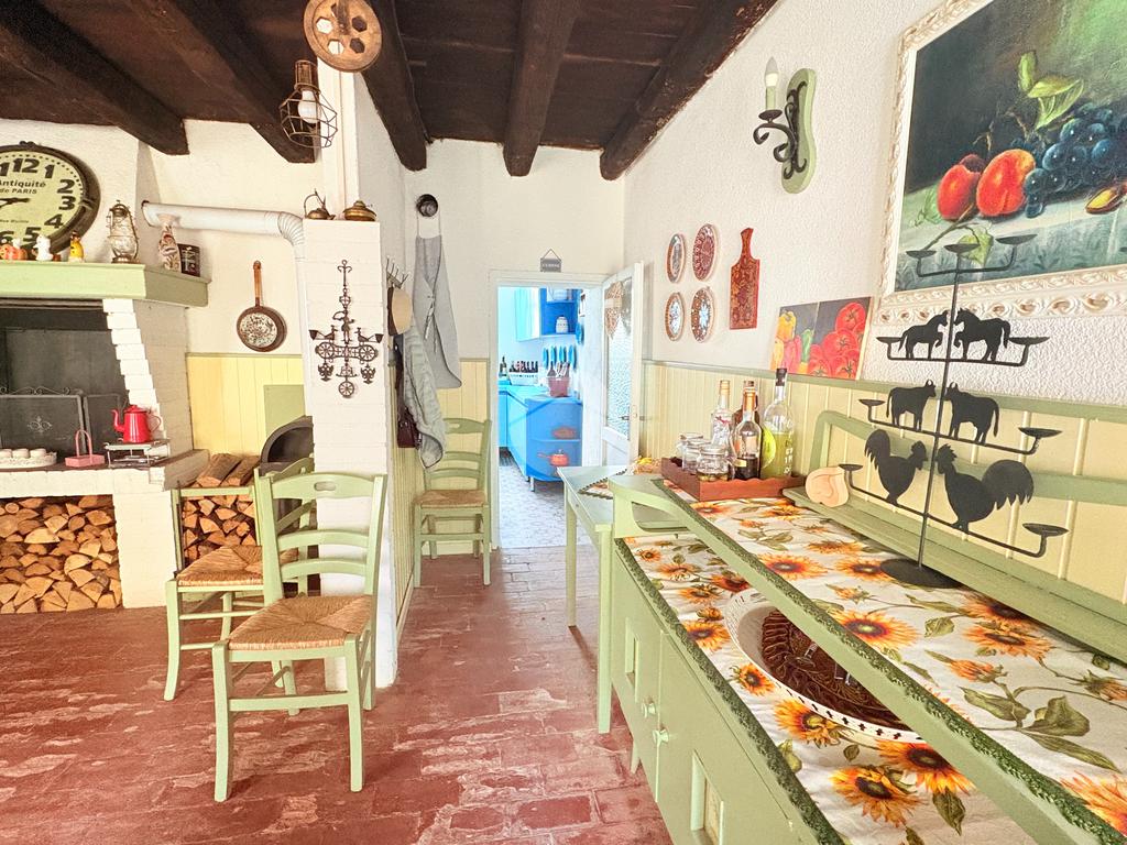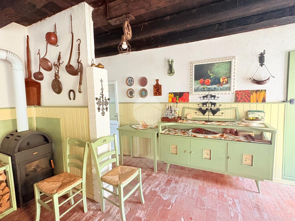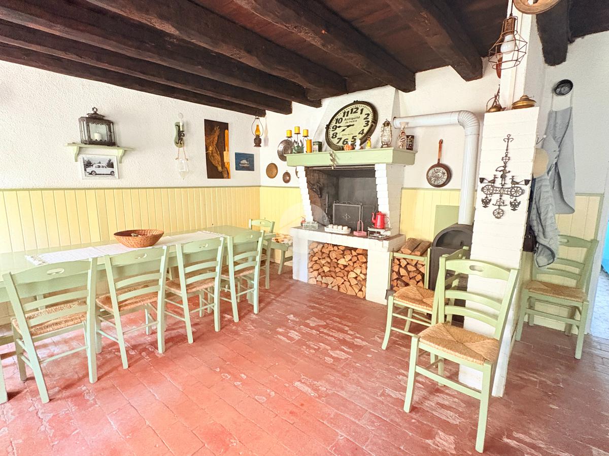Ampia sala da pranzo con camino, ideale per cene conviviali in un’atmosfera accogliente;